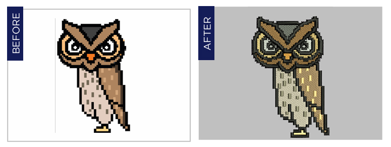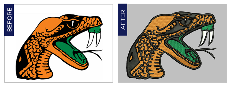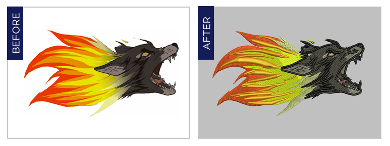 With a team of professional digitizets, we deliver quality digitized tapes with the required number of stitches,least thread trims and color changes, compatible with all popular embroidery machines. We provide digitizing for apparels, leather, headwear and any other substrates.